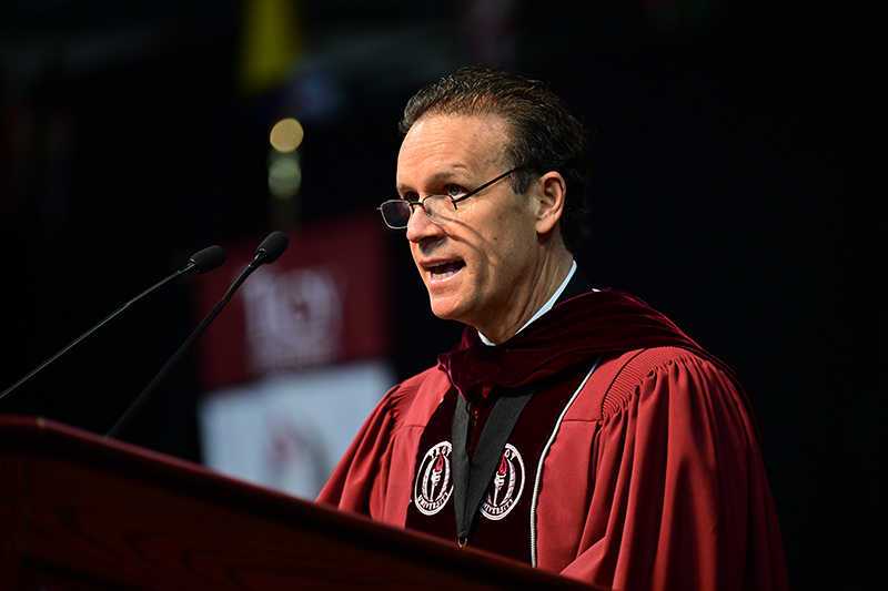 Luis Alverde Montemayor addressed nearly 1,000 graduates in two commencement ceremonies on the Troy Campus on Friday.