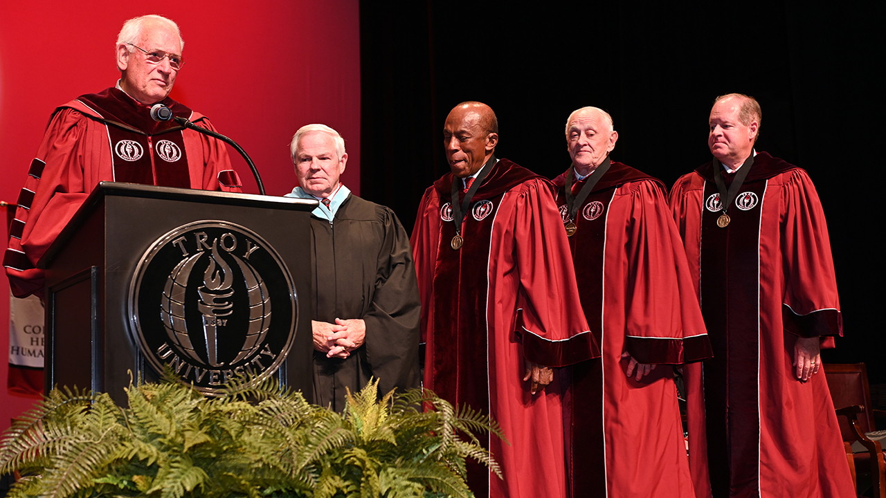 Also, during Monday night’s ceremony, Troy University honored Ray White, Vice Chancellor of the Montgomery Campus, who will be retiring after 30 years of service to the University. White has served as Vice President and Vice Chancellor at the Montgomery campus for two terms, totaling 23 years, and served the University as head of human resources for three years.