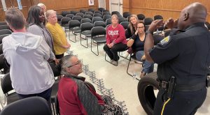The session focused on patrol and corrections, giving attendees a hands-on introduction to some of the tools officers use in the field, including spike strips designed to stop vehicles. Captain Sanford Wingard demonstrated how the devices work, addressing a common misconception about their use.